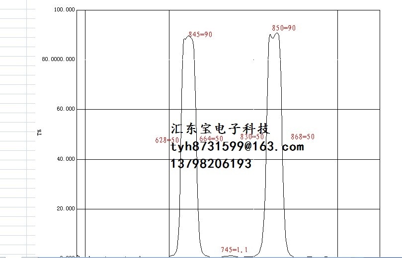 650+850nm band pass filter, 650+850nm narrow band pass filter, 650+850nm bimodal filter, IR narrow bandpass filter