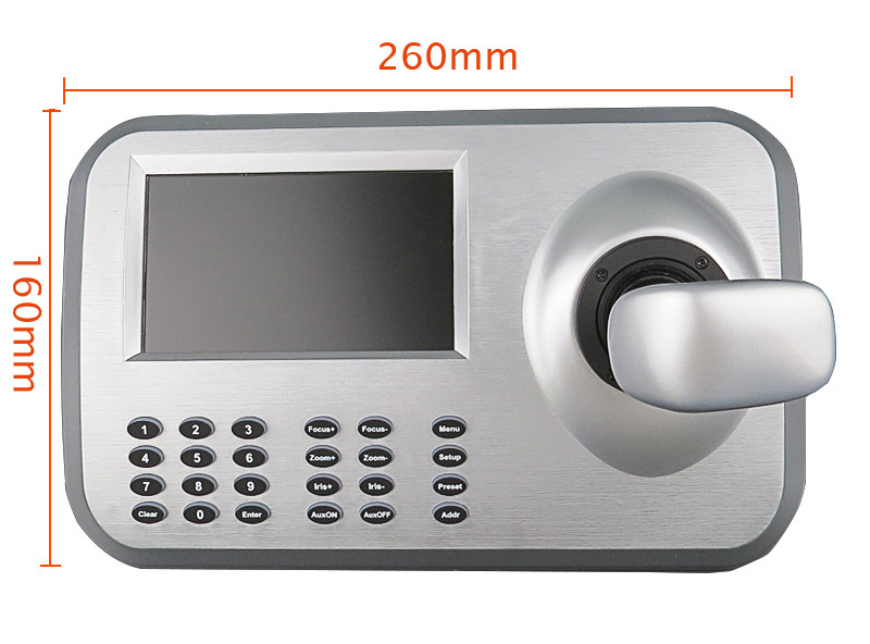 This network control keyboard is a powerful three-dimensional with multi-function , Easy to operate, no need to make any setting,plug and play; powerful hardware decoding capabilities, the first to achieve industry IP dome unlimited access for large safe City projects, support 5.0 “LED LCD HD real-time display; Support HDMI output to achieve the main console screen and control equipment screen salvo (comes matrix switching function), reducing installation costs!